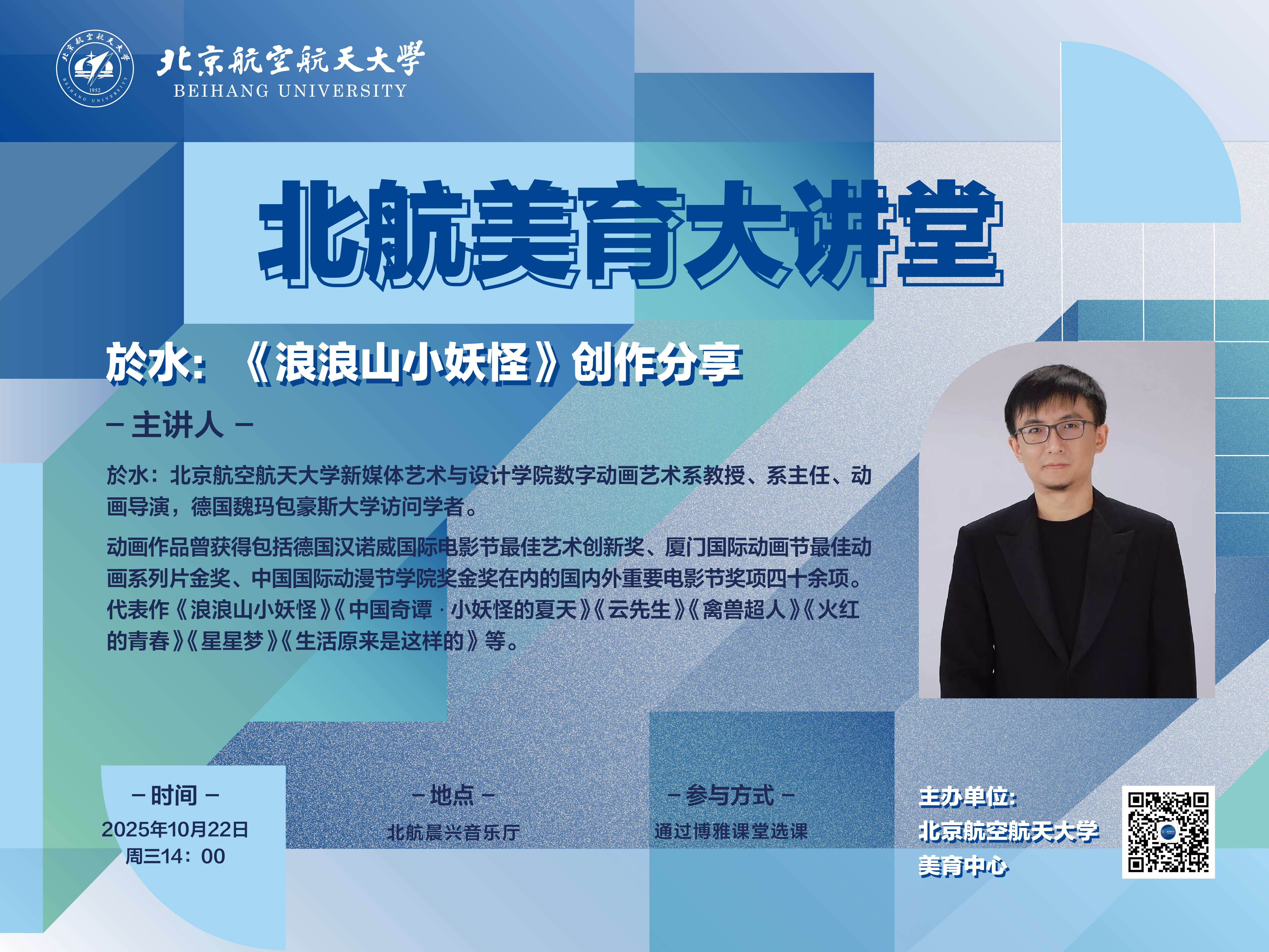 2025年8月2日动画电影《浪浪山小妖怪》上映,获得现象级的观众好评,豆瓣评分8.5分,并成功登顶中国影史二维动画电影票房冠军。本片导演兼编剧於水将会带来关于本片的创作流程和方法以及对当代电影创作的思考。